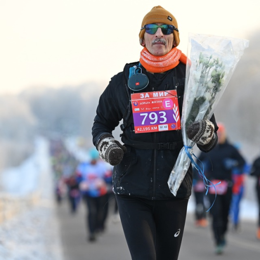 Среди них - специалисты Консорциума "Кодекс". Директор по данным Инна Пустыльник и начальник сектора дистанционного обучения Мария Чепанова пробежали дистанцию 5 км. Алена Кувшинова, специалист по тестированию, преодолела 10 км с результатом 48 минут 46 секунд. Полную марафонскую дистанцию - 42,2 км - с цветами в руках пробежал Владимир Курдюков, ведущий инженер-программист. По его словам, погодные условия добавили марафону особенностей: на морозе питьевые энергетические гели сильно густели, и их приходилось отогревать в варежках.