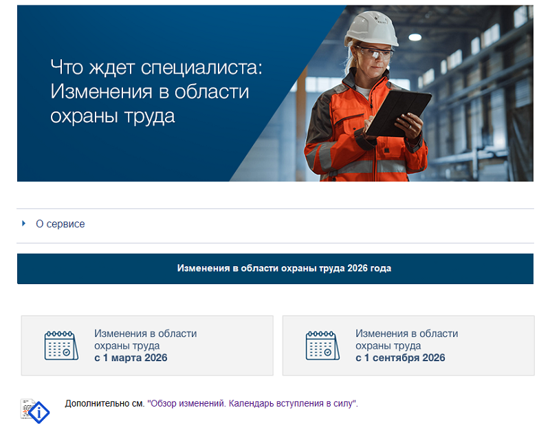 Напоминаем! В системе содержится динамический сервис "Главные изменения в области охраны труда".