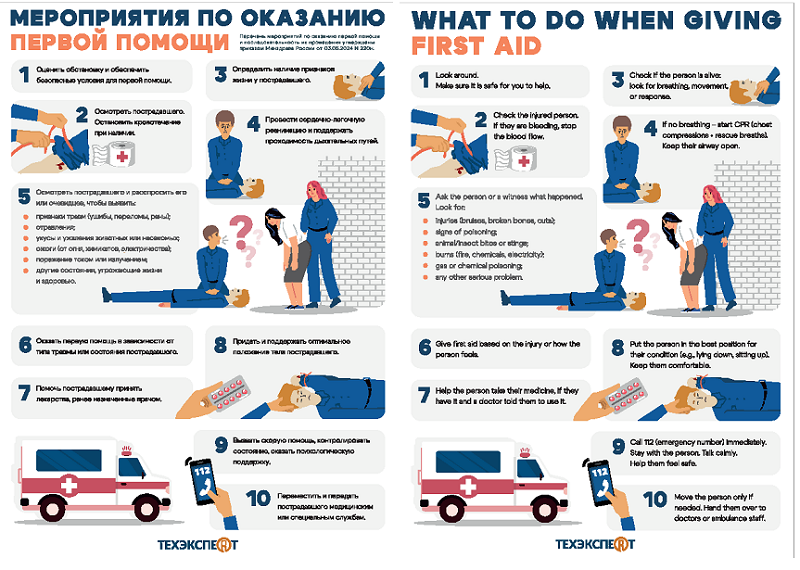 Уважаемые пользователи системы "Техэксперт: Охрана труда"! Мы рады представить вам новый информационный плакат "Мероприятия по оказанию первой помощи". Этот плакат разработан с целью повышения готовности и грамотности персонала к оперативному и правильному реагированию в чрезвычайных ситуациях.