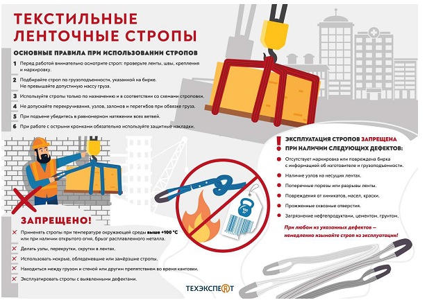 Этот плакат разработан с целью повышения осведомлённости персонала, занятого в погрузочно-разгрузочных и строповочных работах, о безопасном использовании текстильных ленточных стропов - одного из самых распространённых грузозахватных приспособлений на производстве.