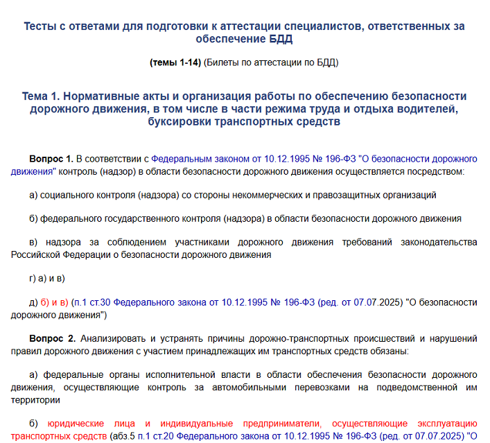 Рады сообщить, что в нашей системе уже доступны обновленные ответы на все вопросы для самоподготовки к прохождению аттестации в УГАДН ответственного за безопасность дорожного движения (БДД).