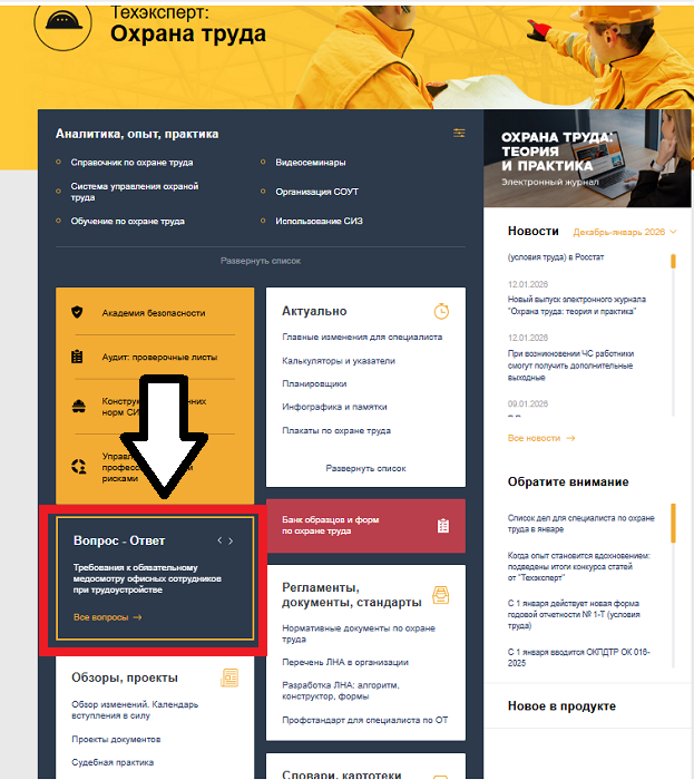 С полным перечнем уже опубликованных экспертных материалов можно ознакомиться в разделе "Вопрос-ответ" на главной странице системы "Техэксперт: Охрана труда".