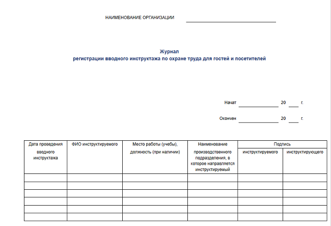 Журнал регистрации вводного инструктажа по охране труда для гостей и посетителей