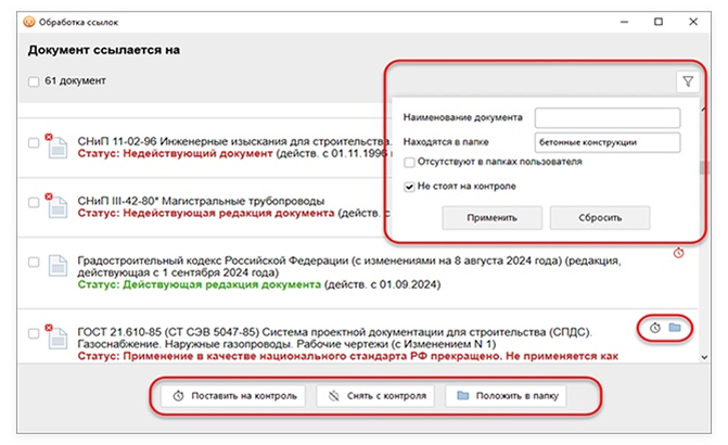 Возможность ставить документы на контроль и добавлять их в персональные папки