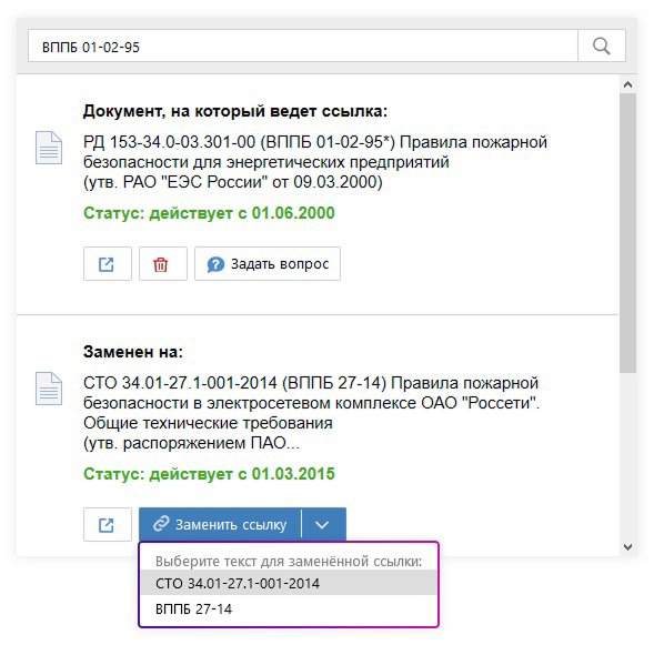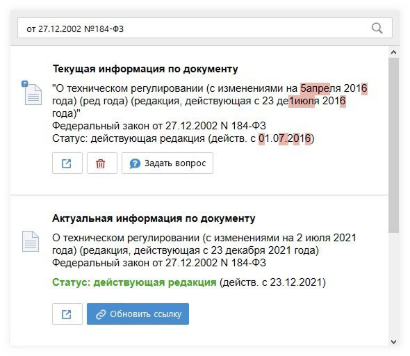 Это возможность быстро и легко актуализировать внутренние документы.Позволяет напрямую из вашей рабочей программы проверять актуальность правовых и технических норм в документации.Автоматизирует процесс проверки.